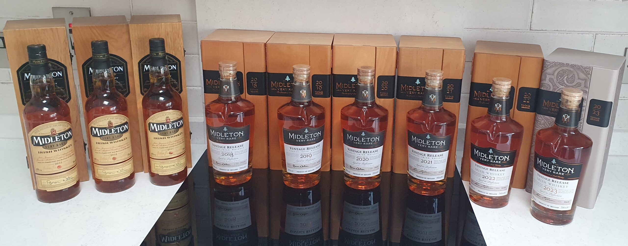 V ponuke Midleton set. V deviatich flasiach rok 2015-2023. Vsetko v original krabiciach s certifikatom.